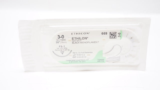 Ethicon 669 3-0 ETHILON Nylon, FS-1, 24mm 3/8c Reverse Cutting, 30inch