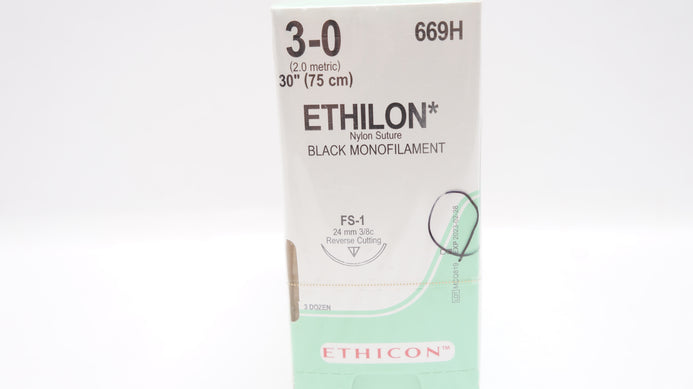 Ethicon 669H ETHILON Stre FS-1 24mm 3/8c Reverse Cutting, 18inch (x) - Box of 36