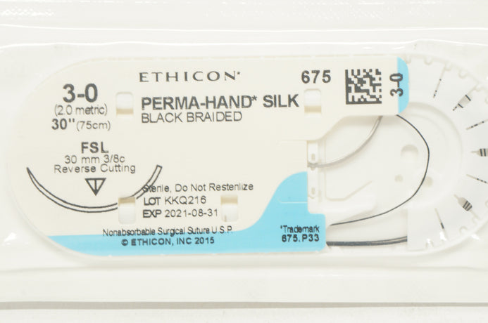 - Ethicon 675 3-0 PERMA-HAND SILK FSL 30mm 3/8c Reverse Cutting 30inch (x)