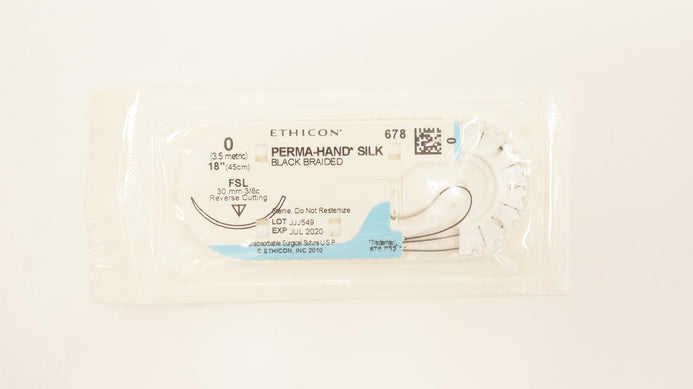 - Ethicon 678 0 PERMA-HAND SILK, FSL, 30mm 3/8c Reverse Cutting, 18inch (x)