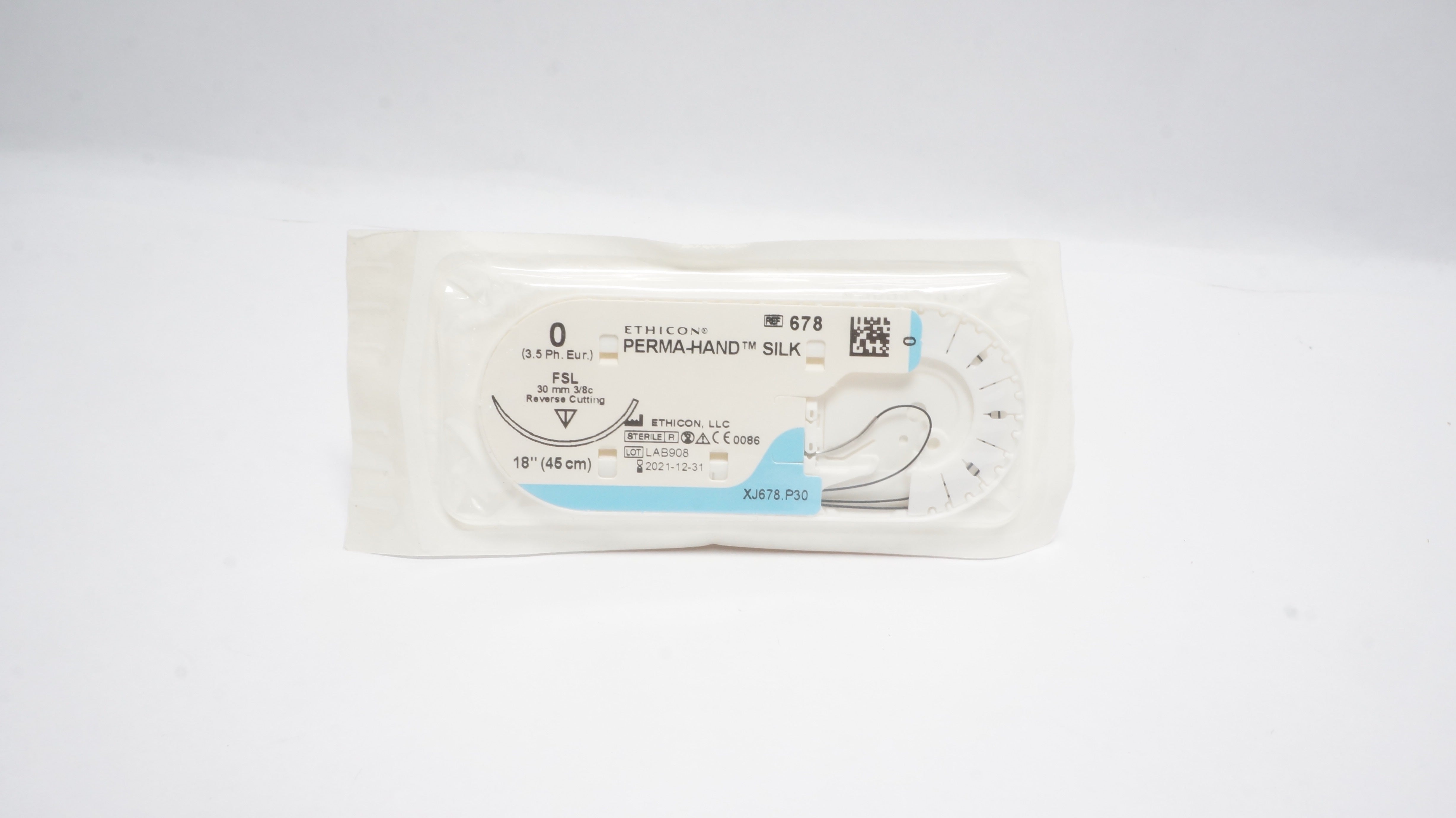 - Ethicon 678 0 PERMA-HAND SILK Stre FSL 30mm 3/8c Reverse Cutting, 18inch (x)