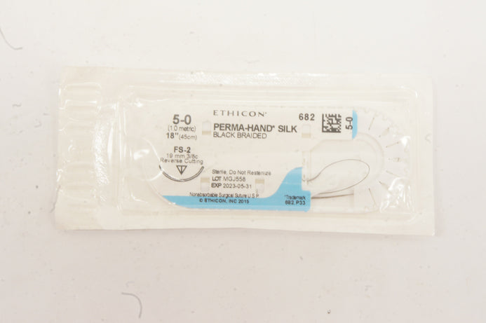 - Ethicon 682 5-0 PERMA-HAND SILK, FS-2, 19mm 3/8c Reverse Cutting, 18inch