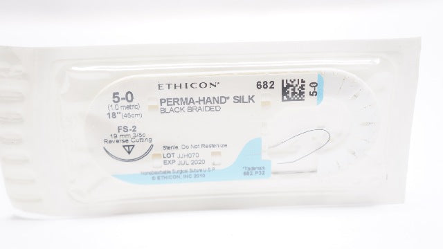 Ethicon 682 5-0 PERMA-HAND SILK, FS-2, 19mm 3/8c Reverse Cutting, 18inch