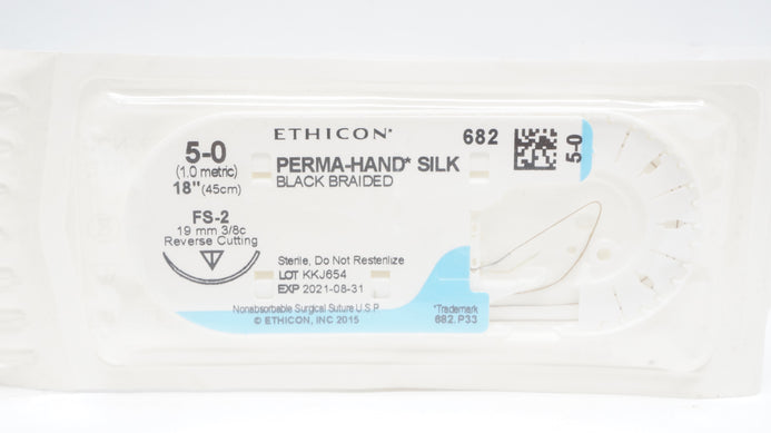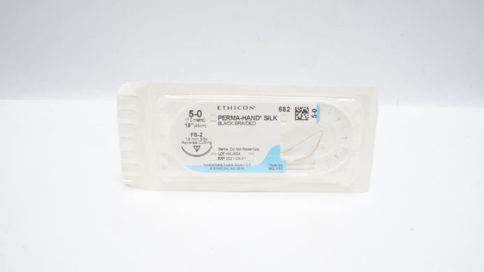 Ethicon 682 5-0 PERMA-HAND SILK Black Braided Suture FS-2 19mm 3/8c Reverse Cutting 18inch