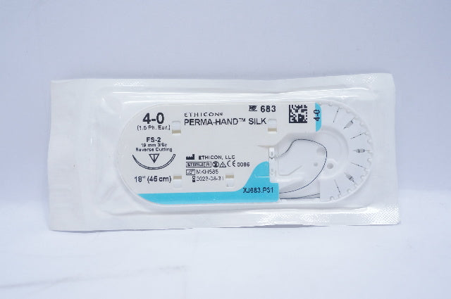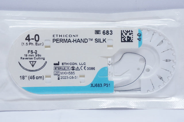 - Ethicon 683 4-0 PERMA-HAND SILK, FS-2, 19mm 3/8c Reverse Cutting, 18inch