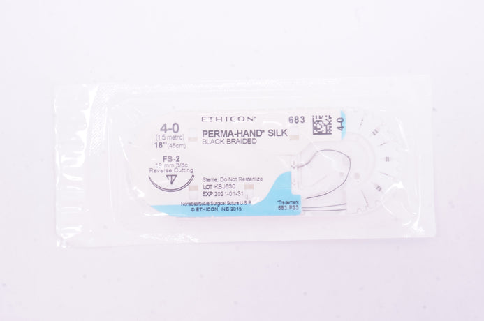 Ethicon 683 4-0 Perma-Hand Silk Surgical Suture FS-2 19mm 3/8c Reverse Cutting, 18 inch