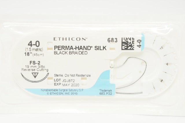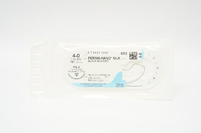 - Ethicon 683 4-0 Perma-Hand Silk Stre FS-2 19mm 3/8c Reverse Cutting, 18in. (x)