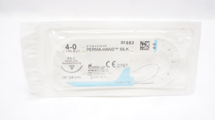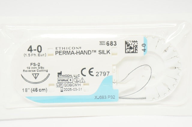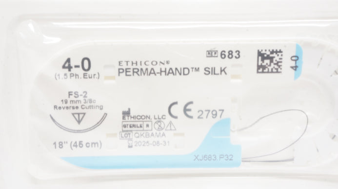 - Ethicon 683 4-0 Perma-Hand Silk Stre FS-2 19mm 3/8c Reverse Cutting, 18inch