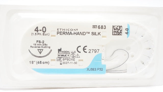Ethicon 683 4-0 PERMA-HAND SILK Stre FS-2 19mm 3/8c, Reverse Cutting 18inch