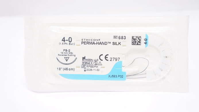- Ethicon 683 4-0 Perma-Hand Silk Stre FS-2 19mm 3/8c Reverse Cutting, 18inch