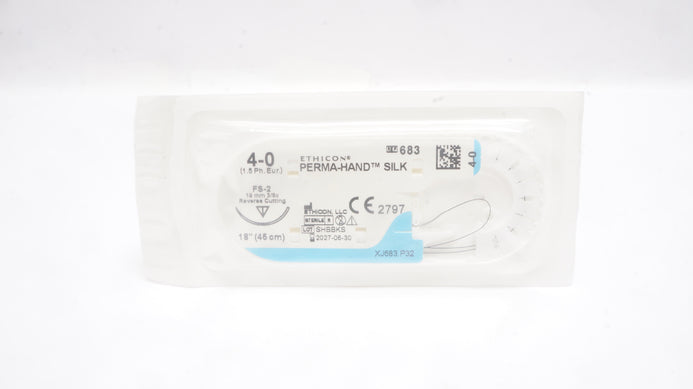Ethicon 683 4-0 Perma-Hand Silk Stre FS-2 19mm 3/8c Reverse Cutting, 18inch