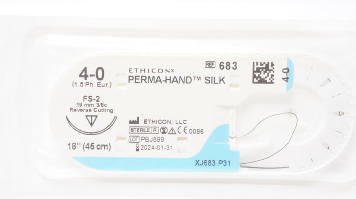 - Ethicon 683 4-0 Perma-Hand Silk Stre FS-2 19mm 3/8c Reverse Cutting 18inch (x)