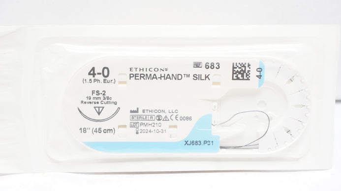 - Ethicon 683 4-0 Perma-Hand Silk Stre FS-2 19mm 3/8c Reverse Cutting, 18inch (x)