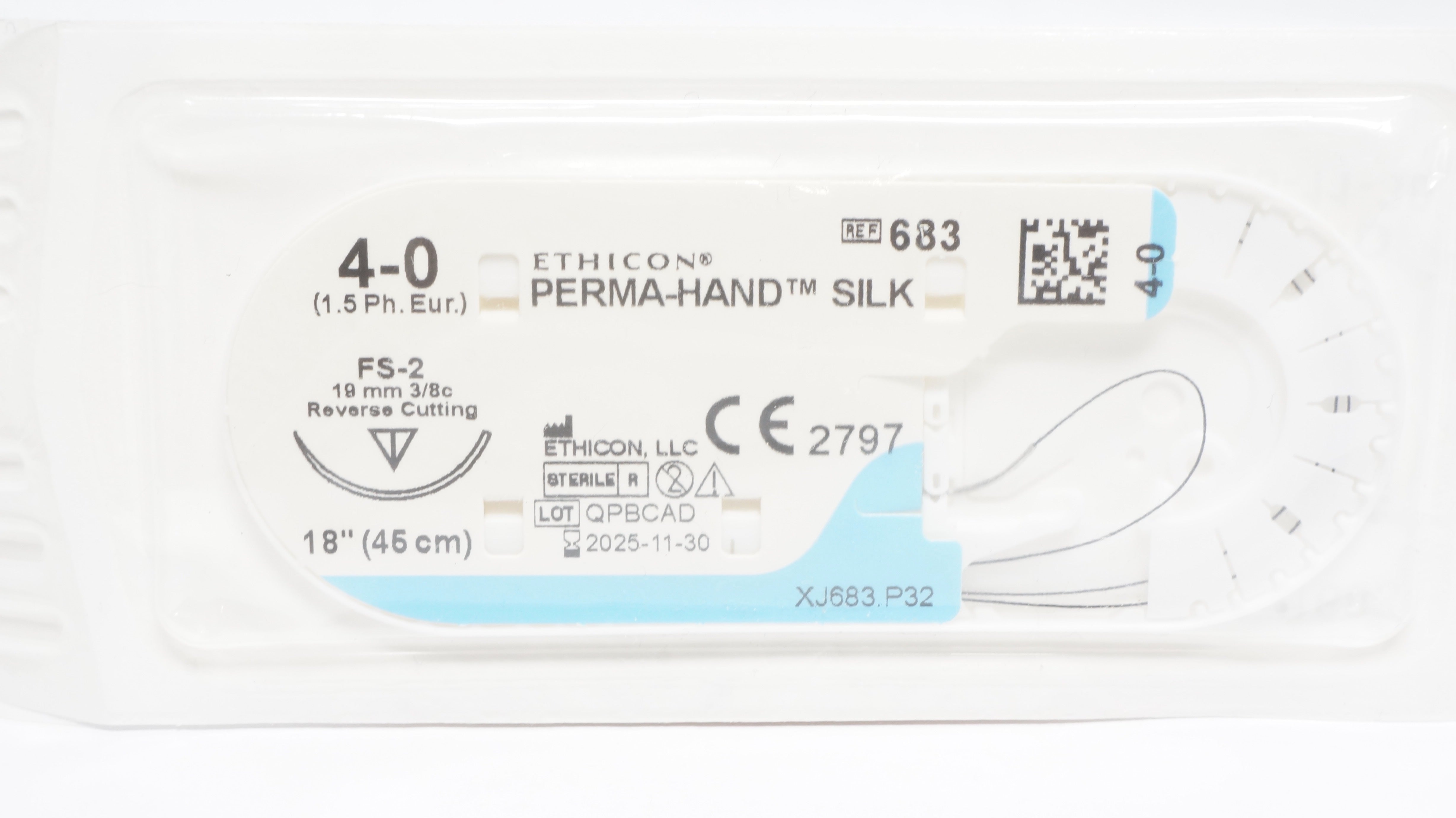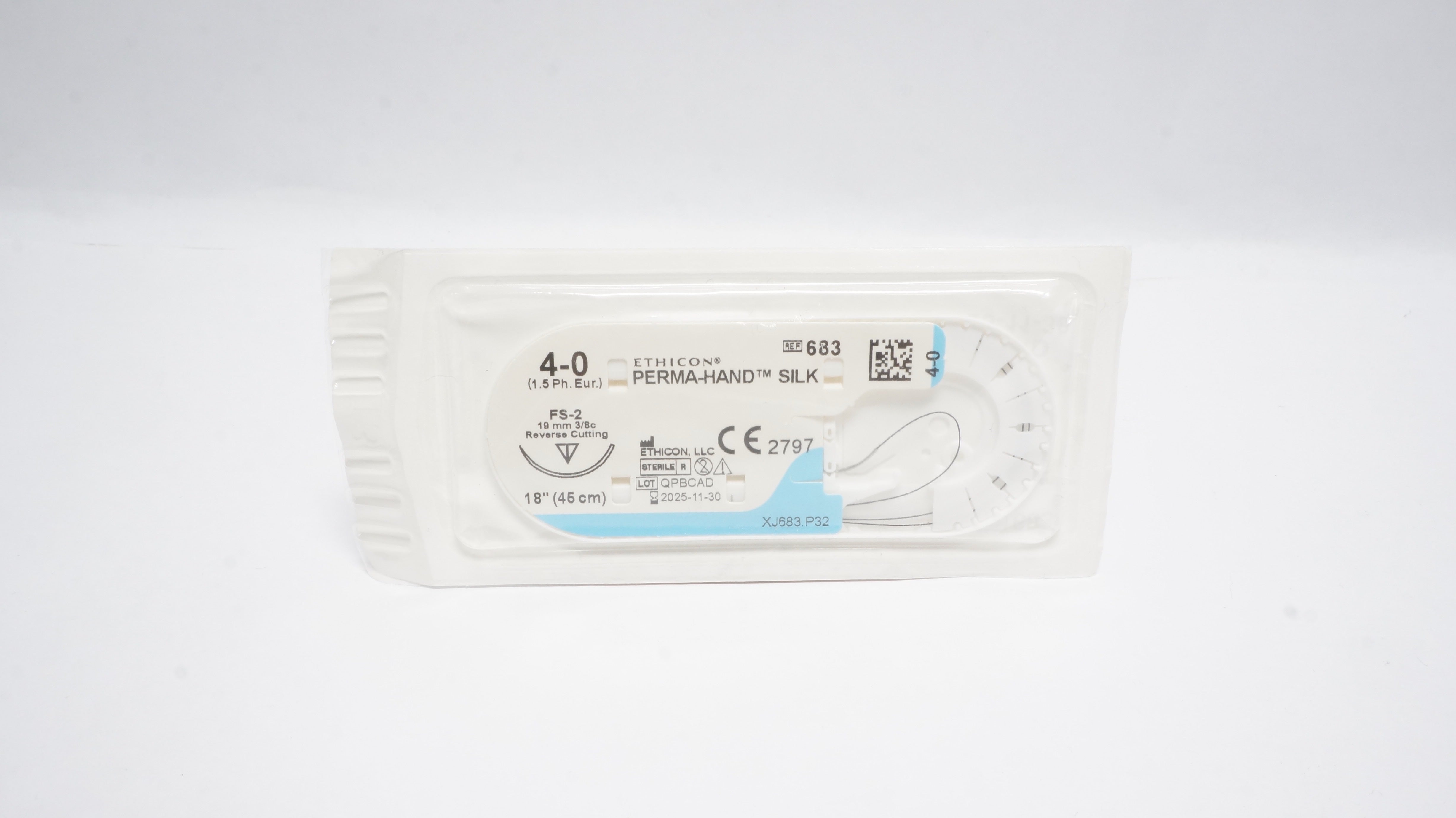 Ethicon 683 4-0 Perma-Hand Silk Stre FS-2 19mm 3/8c Reverse Cutting, 18inch (x)