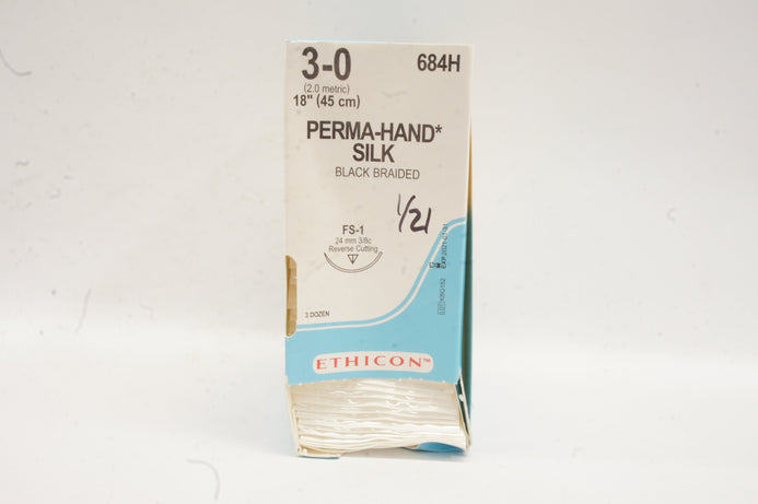 Ethicon 684H 3-0 Perma-Hand Silk FS-1 24mm 3/8c Reverse Cutting 18in(x)-Box of36