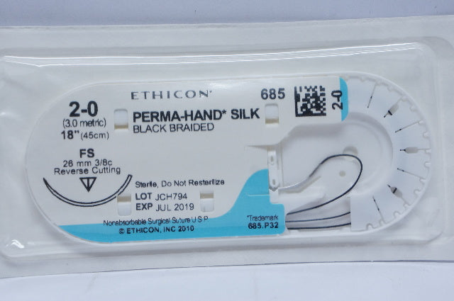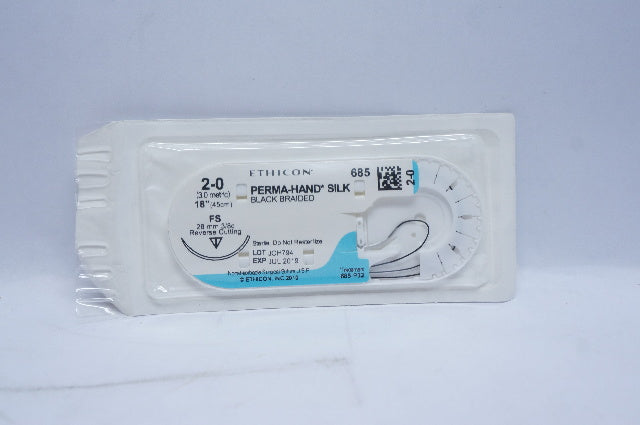 - Ethicon 685 2-0 PERMA-HAND SILK, FS, 26mm 3/8c Reverse Cutting, 18inch (x)