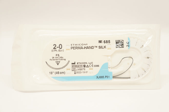 Ethicon 685 2-0 Perma-Hand Silk Stre FS 26mm 3/8c Reverse Cutting 18 inch