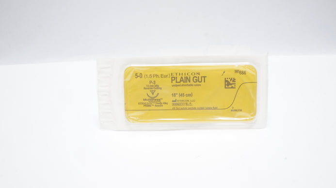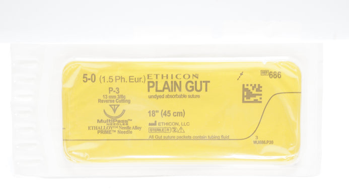 - Ethicon 686 5-0 Plain Gut Surgical Stre P-3 13mm 3/8c Reverse Cutting 18inch