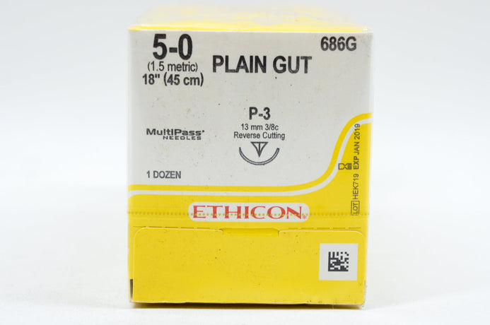 - Ethicon 686G 5-0 PLAIN GUT, P-3, 13mm 3/8c, 18inch (x) - Box of 12