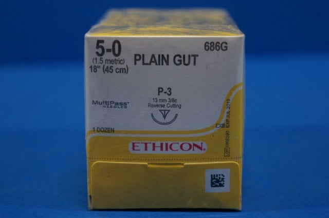 - Ethicon 686G Plain Gut, P-3 13mm, Plain Monofilament 18 -Box of 12