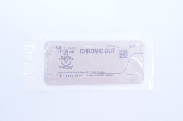 - Ethicon 687 5-0 CHROMIC GUT P-3, 13mm 3/8c Reverse Cutting, 18inch (x)
