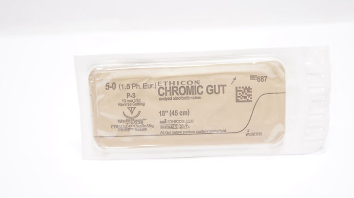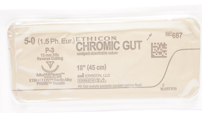 - Ethicon 687 5-0 CHROMIC GUT Surgical Stre P-3, 13mm 3/8c Reverse Cutting, 18inch