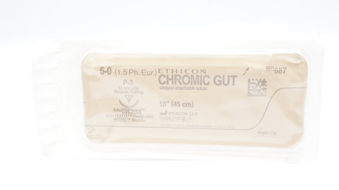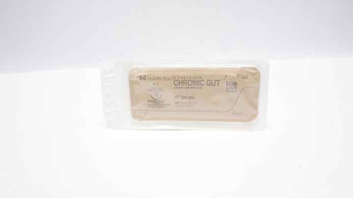 - Ethicon 687 5-0 CHROMIC GUT Surgical Stre P-3 13mm 3/8c Reverse Cutting 18inch(x)