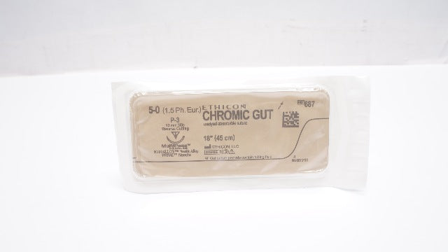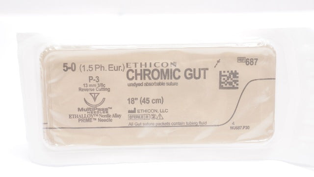 - Ethicon 687 5-0 CHROMIC GUT Undyed Stre P-3 13mm 3/8c Reverse Cutting, 18inch(x)