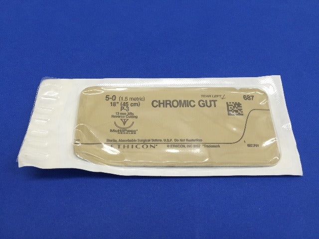 - Ethicon 687 Chromic Gut, P-3, Chromic Monofilament 18