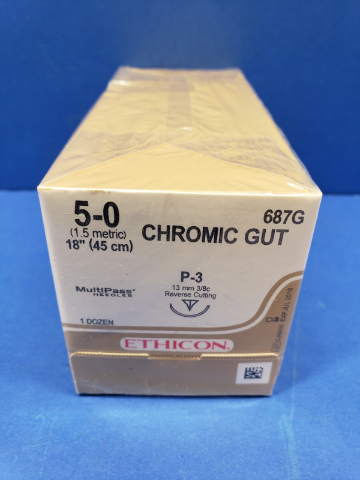 Ethicon 687G 5-0 CHROMIC GUT, P-3 13mm 3/8c Reverse Cutting, 18in. (x) ~ Box of 12