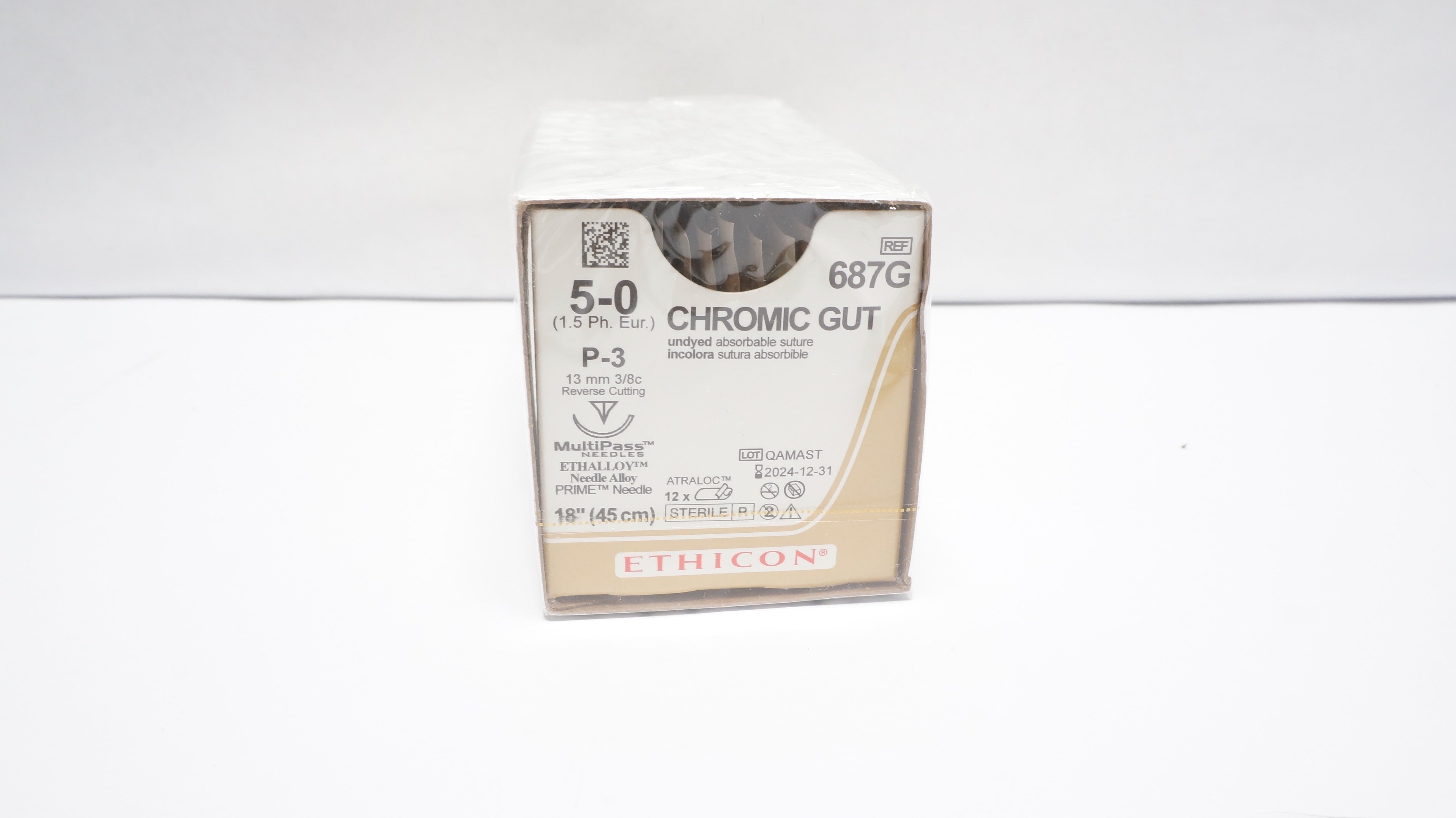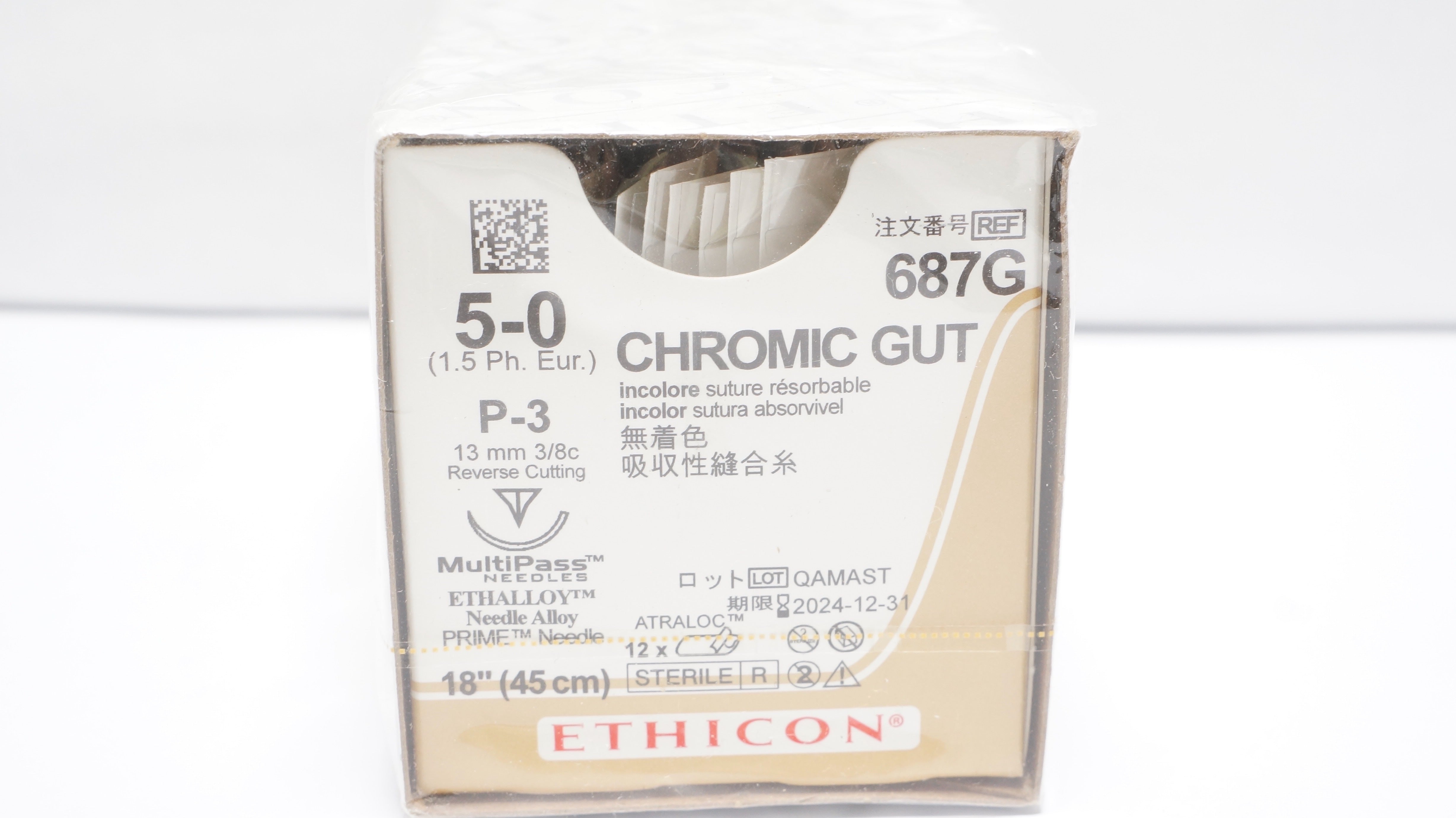- Ethicon 687G 5-0 CHROMIC GUT P-3 13mm 3/8c Reverse Cutting 18inch(x) - Box of 12