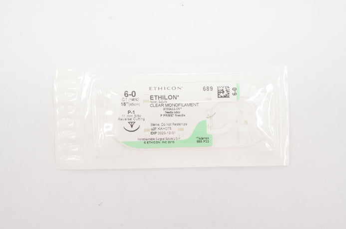 - Ethicon 689 6-0 ETHILON P-1 11mm 3/8c Reverse Cutting 18inch (x)