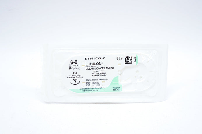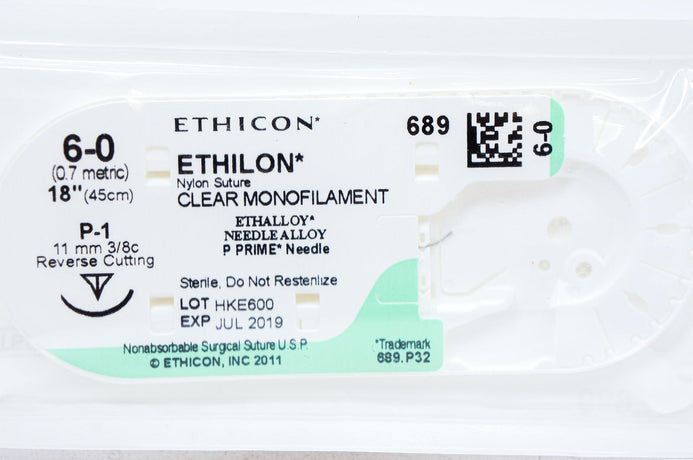 - Ethicon 689 6-0 ETHILON, P-1, 11mm 3/8c Reverse Cutting, 18inch (x) - Lot of 20