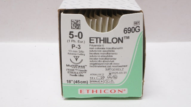 - Ethicon 690G 5-0 ETHILON, P-3, 13mm 3/8c, 18inch - Box of 11