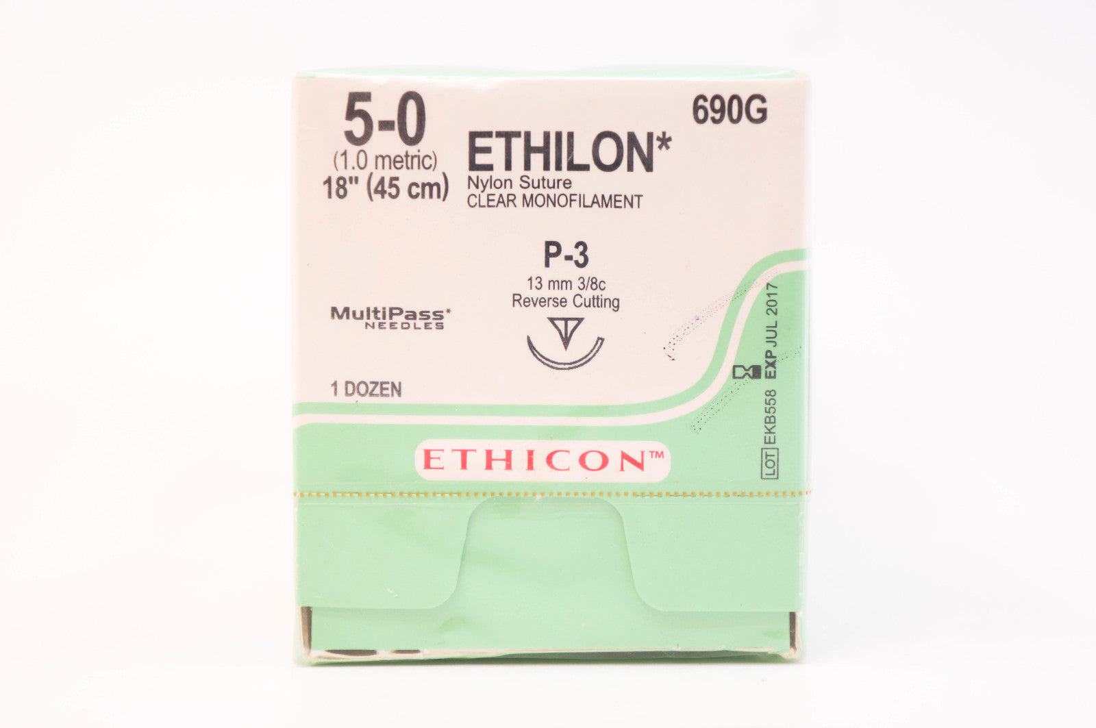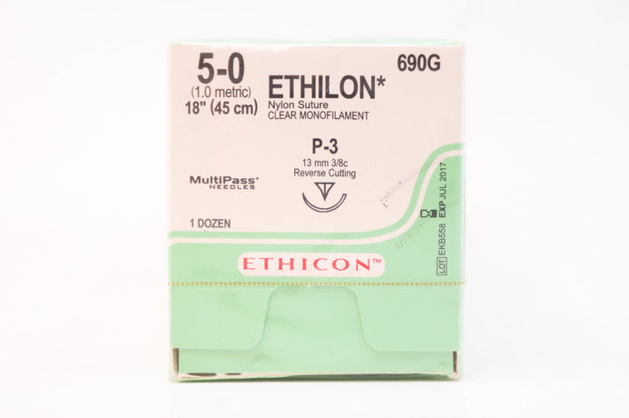 - Ethicon 690G 5-0 ETHILON, P-3, 13mm 3/8c, 18inch ~ Pack of 12 (x)