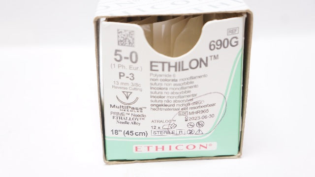 - Ethicon 690G 5-0 ETHILON, P-3, 13mm 3/8c, 18inch Stre. (x) - Box of 11