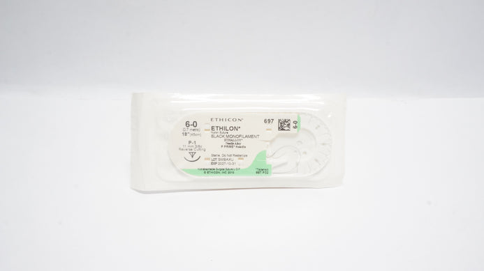 Ethicon 697 6-0 Ethilon Nylon Suture Black Monofilament P-1 11mm 3/8c Reverse Cutting 18inch