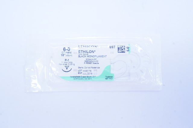 - Ethicon 697 6-0 Ethilon Nylon Stre P-1 11mm 3/8c Reverse Cutting 18inch (x)