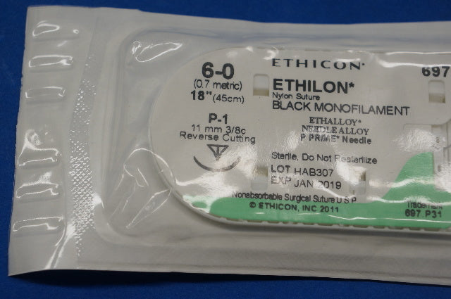 Ethicon 697 6-0 ETHILON, P-1 11mm 3/8c Reverse Cutting, Balck Monofilament, 18