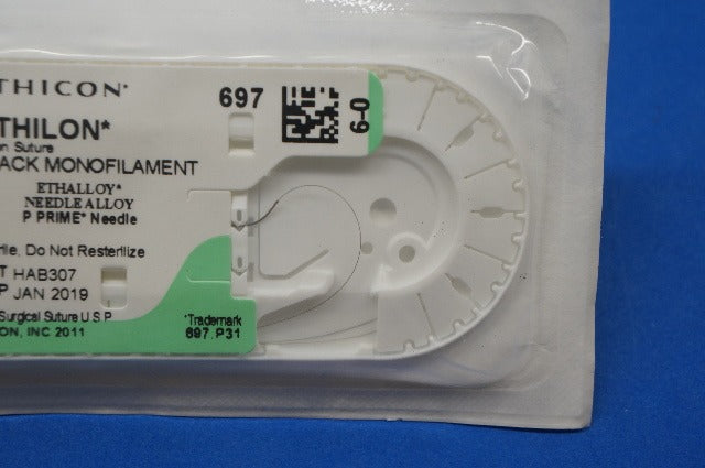Ethicon 697 ETHILON, P-1 11mm 3/8c Reverse Cutting, Balck Monofilament, 18", Size 6-0