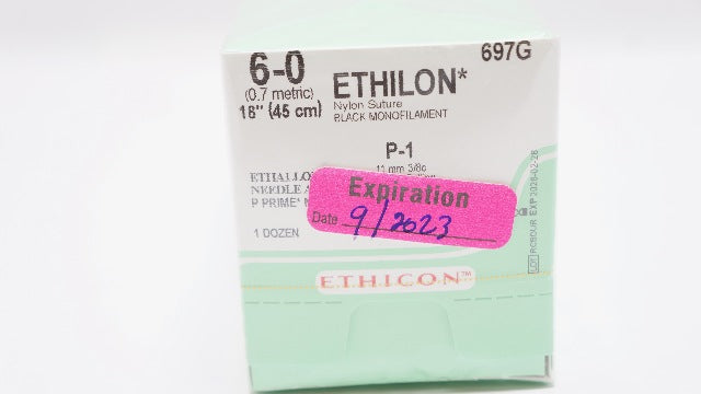 Ethicon 697G 6-0 Ethilon Stre P-1 11mm 3/8c Reverse Cutting 18inch - Box of 12
