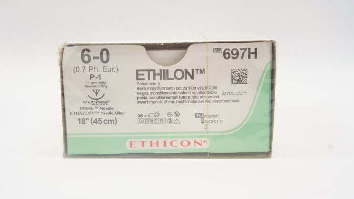 Ethicon 697H 6-0 Ethilon Black 18inch P-1 11mm Reverse Cutting (x) - Box of 36