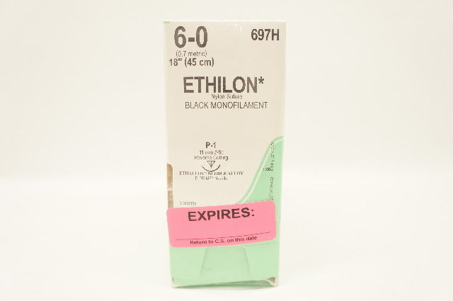 Ethicon 697H Ethilon Nylon Stre, P-1 11mm 3/8c Reverse Cutting 18in (x) -3 Dozen
