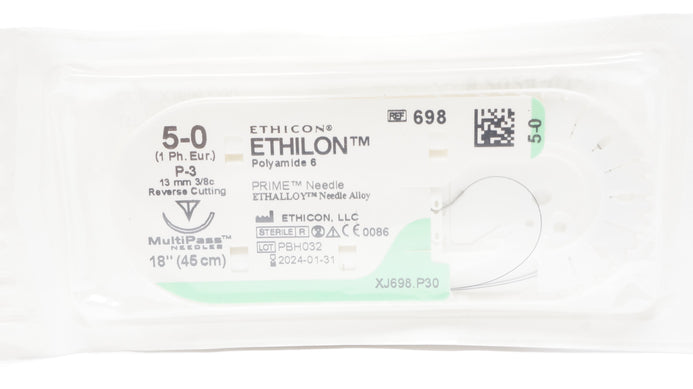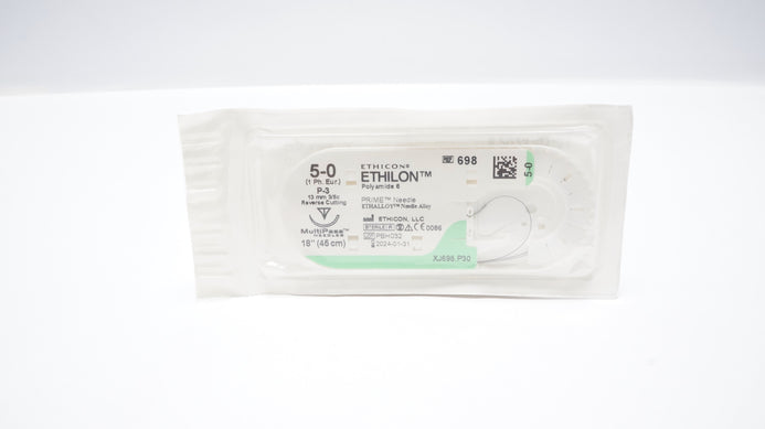 - Ethicon 698 5-0 Ethilon Nylon Stre P-3 13mm 3/8c Reverse Cutting 18inch (x)