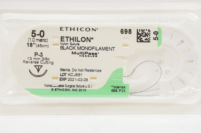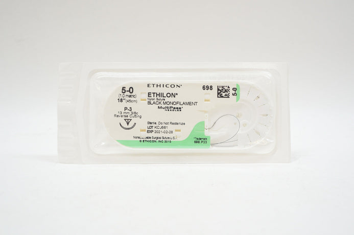 Ethicon 698 5-0 ETHILON, P-3, 13mm 3/8c Reverse Cutting, 18inch