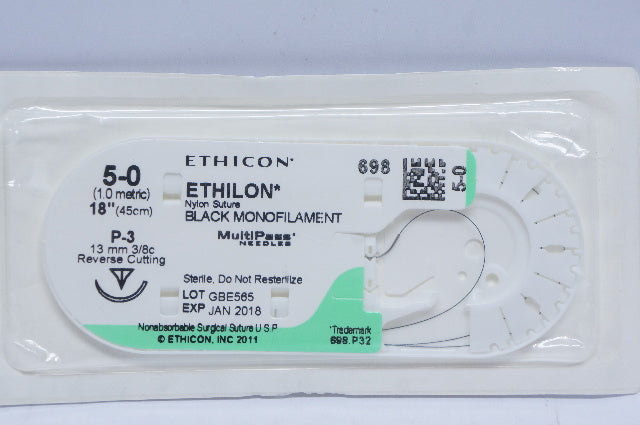 Ethicon 698 5-0 ETHILON, P-3, 13mm 3/8c Reverse Cutting, 18inch (x)