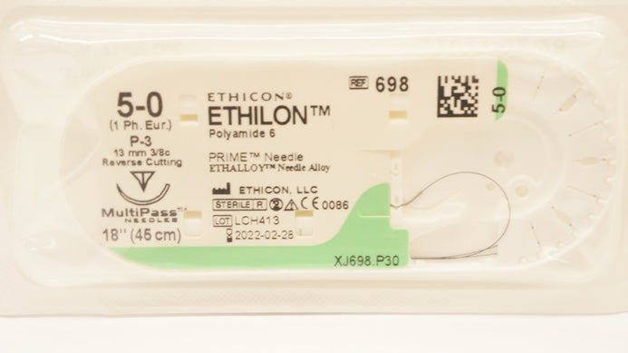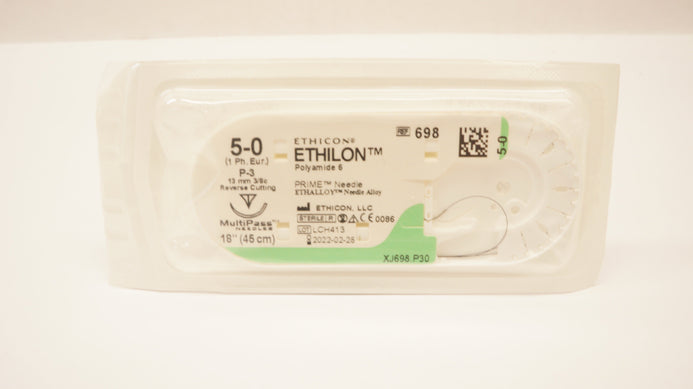 Ethicon 698 5-0 Ethilon Stre P-3 13mm 3/8c Reverse Cutting, 18inch (x)