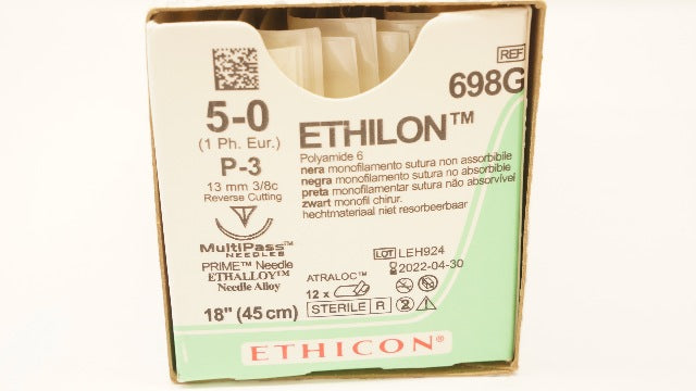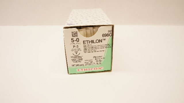 Ethicon 698G 5-0 ETHILON Black Monofilament Non-Absorbable Suture P-3 13mm 3/8c Reverse Cutting 18inch