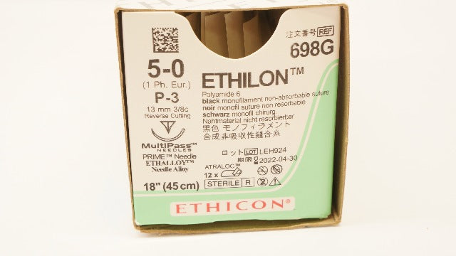 Ethicon 698G 5-0 ETHILON Stre P-3 13mm 3/8c Reverse Cutting 18inch (x)-Box of 10