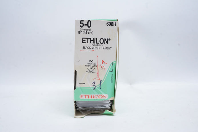 - Ethicon 698H 5-0 ETHILON, P-3, 13mm 3/8c Reverse Cutting, 18inch (x) - Box of 31